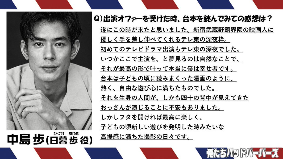 @nishiok俺たちバッドバーバーズおもしろ!!! 中島歩さん好きなら見るべし。