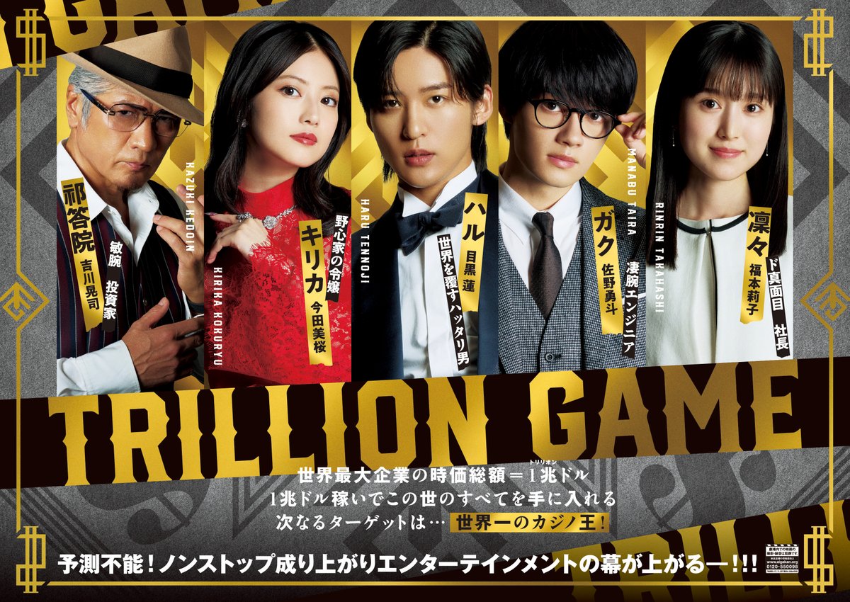 @toho_movie/ #トリリオンゲーム 大型バナーポスター! \ 🎬2025年2月14日(金)公開 #目黒蓮(#SnowMan)×#佐野勇斗 劇場版『トリリオンゲーム』 「勝つまで、闘え。」 各地の劇場では、ハルとガクの 超特大のバナーポスターが堂々登場! ※一部劇場を除く #今田美桜 #福本莉子 #吉川晃司 @trillion_tbs pic.x.com/jBNQaFfr5j